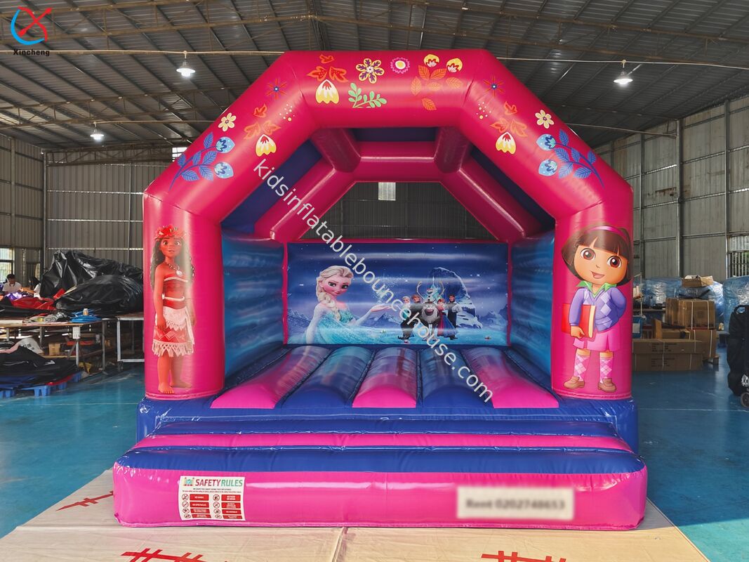 Profesyonel sınıf şişme sıçrama evi, canlı pembe prenses temasıyla özel olarak ticari kullanım ve çocuk eğlencesi için tasarlanmıştır.