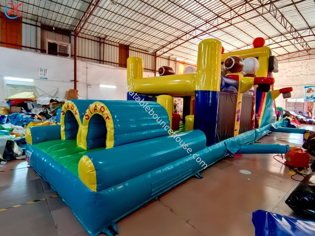 Bu profesyonel düzeydeki şişme engelleme kursu kalenin heyecanını zorlu engellerle ve heyecan verici bir kaydırma ile birleştirir.Özellikle çocukların eğlencesi ve aktif oyunları için tasarlanmıştır.