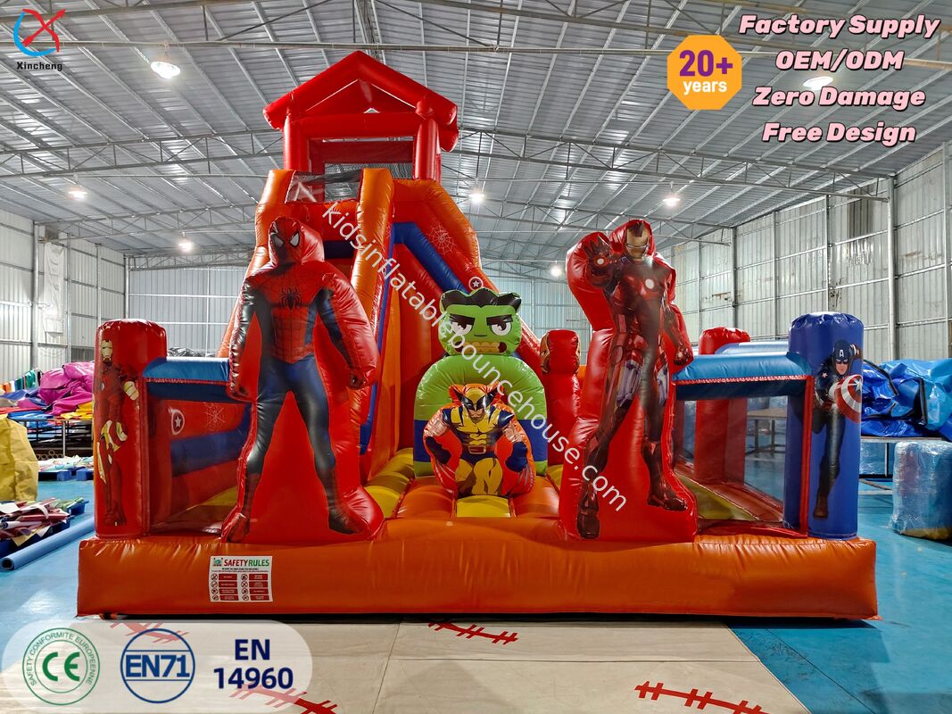 Kaydedici Kahramanlar Şişme Zıplama Evi Kaydıraklı Kombine Kale